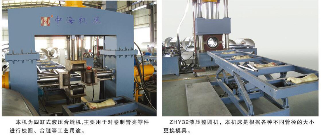 該設(shè)備是大口徑直縫埋弧焊管生產(chǎn)線上的五大主機(jī)之一,主機(jī)由立柱、油缸、滑塊、油箱、橫梁、工作臺(tái)、預(yù)凸裝置。模具、液壓比例伺服系統(tǒng)、電氣數(shù)控系統(tǒng)組成。主機(jī)有3個(gè)數(shù)控軸,輔機(jī)有5個(gè)以上數(shù)控軸。輔機(jī)由縱向接料裝置、側(cè)擋料機(jī)、前后操作機(jī)、前后托料架、側(cè)出料裝置組成。